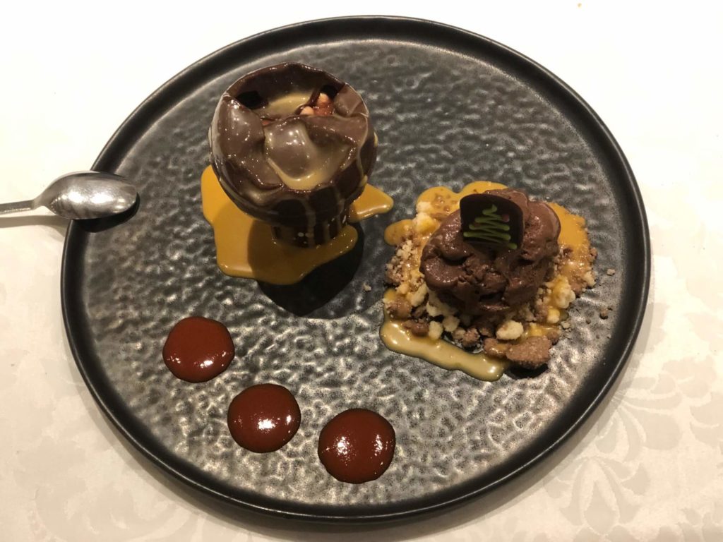 I naravno na kraju sledi dezert! Prava čokoladna bomba! Preko koje je prelivena vruća mlečna čokolada koja se topi! Mmm…