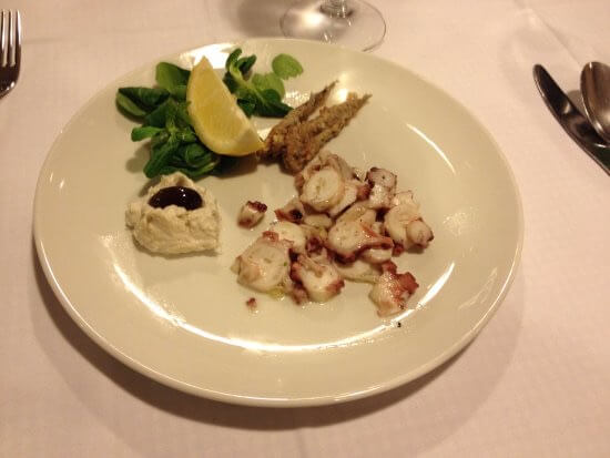 Prvo da zamezimo sa paštetom od bakalara sa istarskim maslinama, salatom od hobotnice koja osvežava i slatko slanim sardinama.