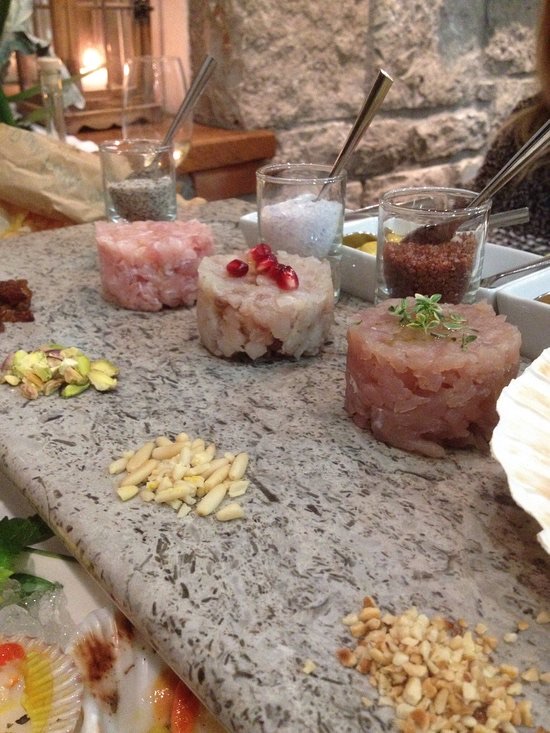 A tu je i selekcija tartar bifteka za 2 osobe! Delikates koji se dobija od usitnjenog živog mesa ili ribe sa dodatkom začina! Ovog puta uživamo u tartar biftecima od tune, brancina i gambora. Gastronomska poslastica!